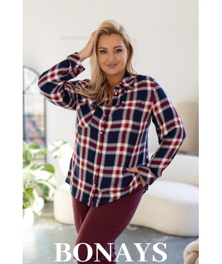 Koszula o eleganckim fasonie zapinana z przodu na rząd guziczków z logowaniem producenta, rękaw długości 3/4 z możliwością podpięcia na wysokości łokcia wykończony mankietem z zapięciem na guzik. Koszula z klasycznym kołnierzykiem, Z tyłu koszuli karczek i kontrafałda, dzięki której koszula ładnie układa się na ciele i nie opina go. Koszula po bokach posiada długie rozporki, które dodają lekkości modelowi i sprawia, że jest niezwykle przewiewna - doskonała na upalne dni. Dodatkowo na przodzie wszyto ozdobna kieszonkę.