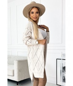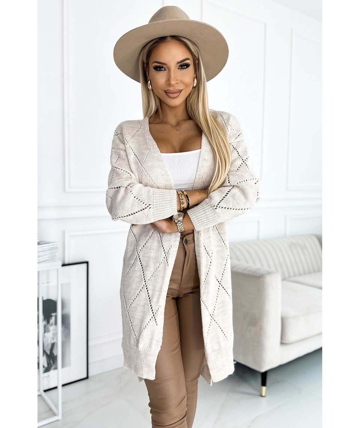 Odkryj nasz ciepły kardigan z ażurowymi rombami, idealny na chłodniejsze dni! Ta szara narzutka z dłuższym tyłem łączy w...