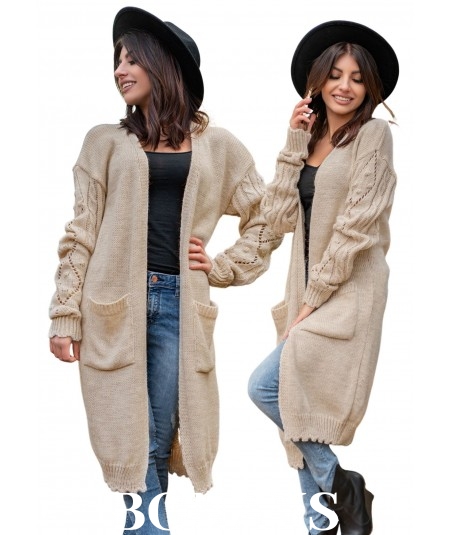 Beżowy długi kardigan z...