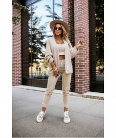 Odkryj nasz ciepły kardigan z ażurowymi rombami, idealny na chłodniejsze dni! Ta szara narzutka z dłuższym tyłem łączy w...