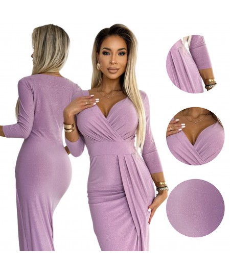 Błyszcząca maxi sukienka z kopertowym dekoltem i rozcięciem na nodze . Uszyta z elastycznego materiału z brokatem. Idealna na eleganckie okazje....