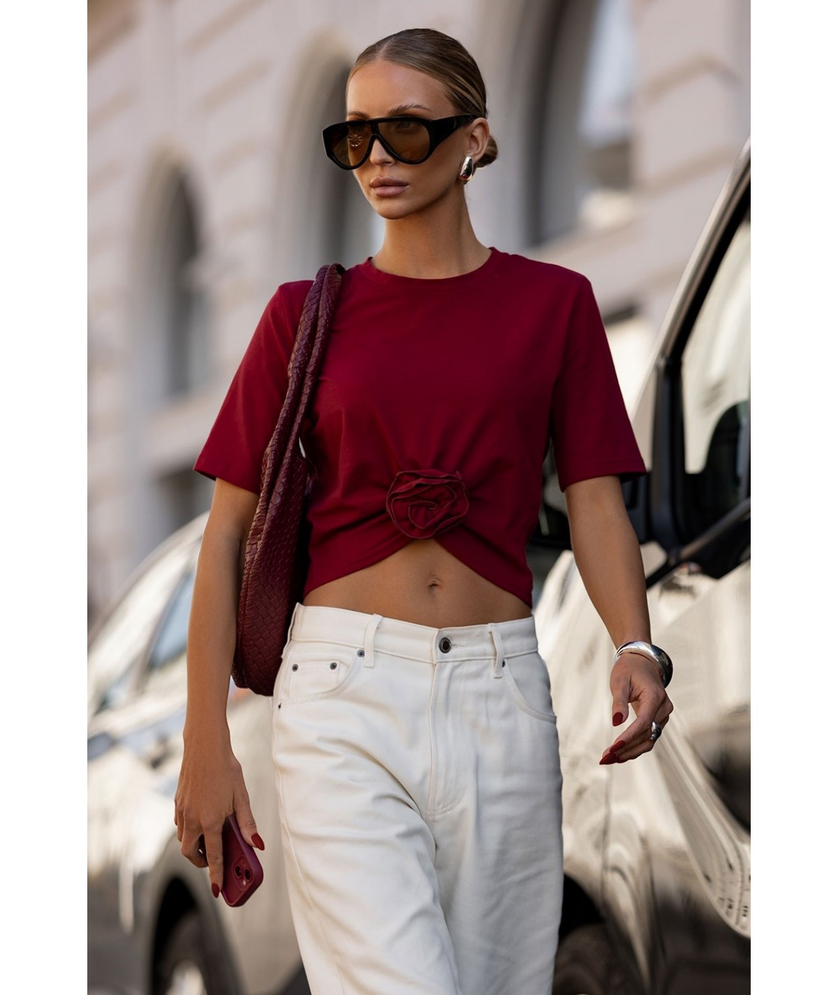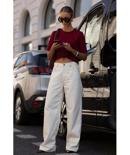Bluzka o kroju kimono z uroczą falbanką to połączenie wygody i subtelnej elegancji. Dekolt z ozdobną łezką i faktura tkaniny...