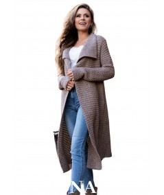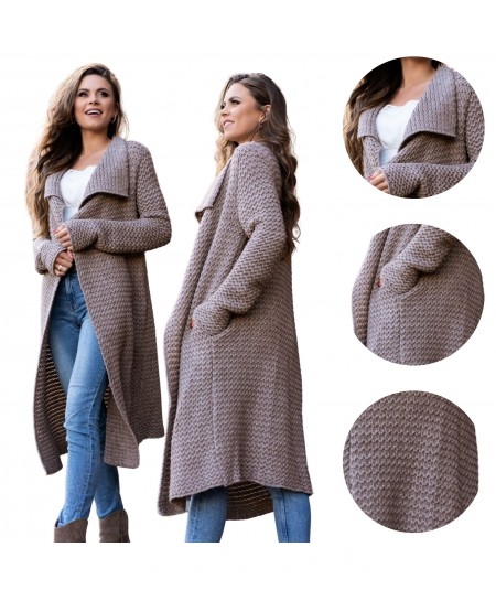 Długi akrylowy kardigan damski z lejącym dekoltem. Kardigan idealny do każdej stylizacji, długi rękaw i obszerny kołnierz doda każdej twojej...