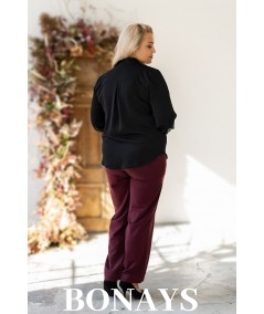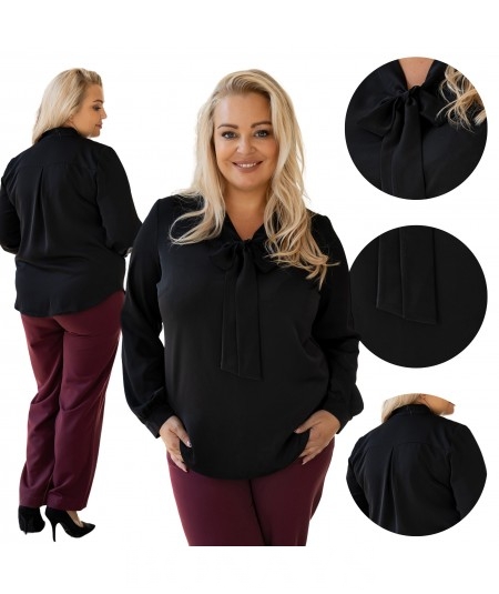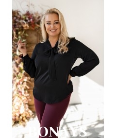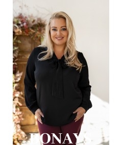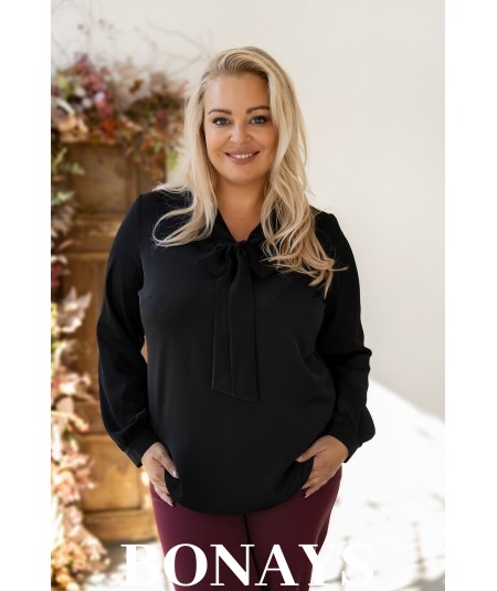 Gładka czarna koszula damska z krawatką wiązaną w kokardę
