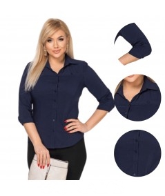Granatowa koszula damska z rękawem za łokieć Plus Size