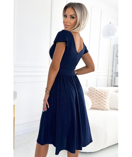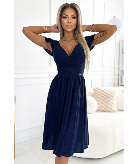 Matilde – rozkloszowana sukienka z kopertowym dekoltem i krótkim rękawkiem, w kolorze zielonym.