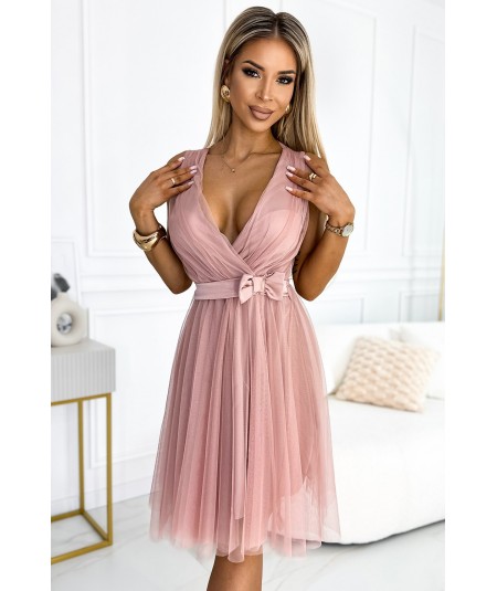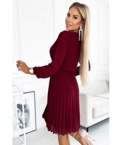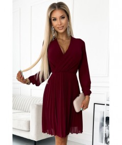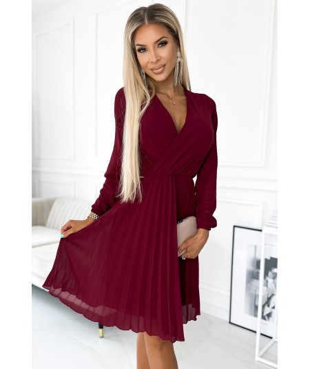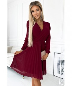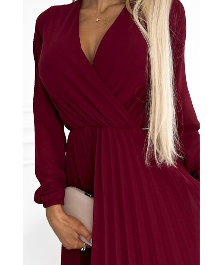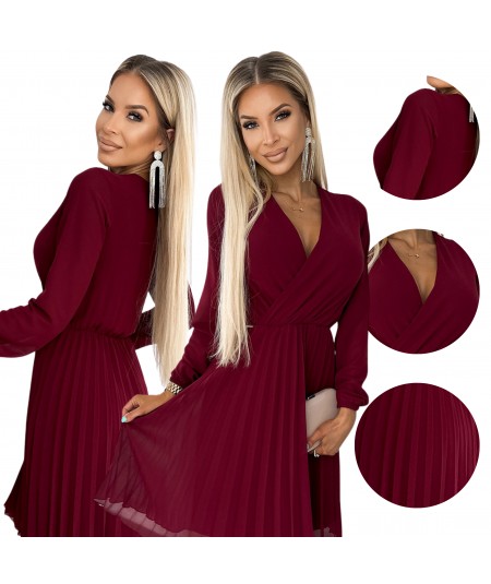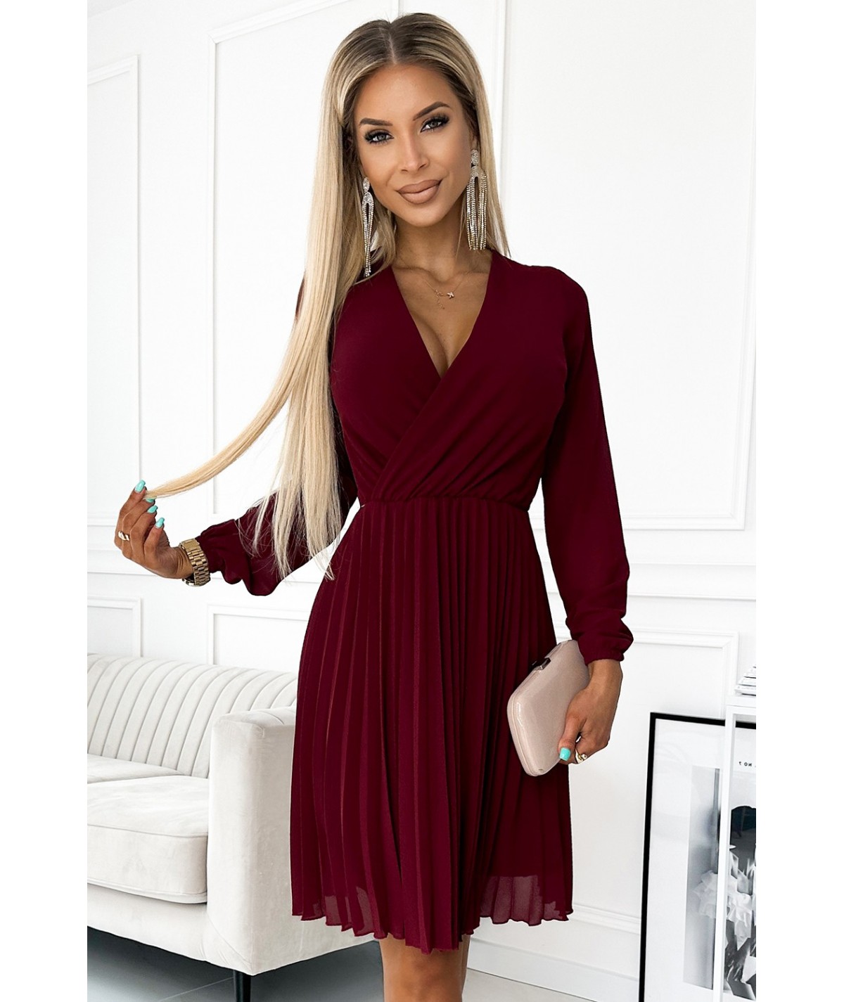 Isabella – plisowana szyfonowa sukienka z dekoltem i długim rękawkiem, w eleganckim odcieniu zieleni butelkowej. Idealna na różne...