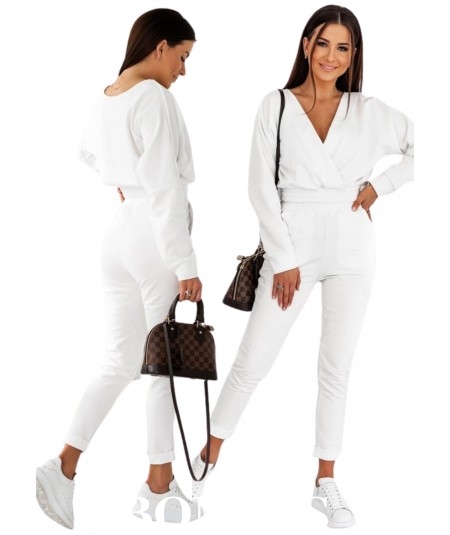 Gładki perfekcyjnie podkreślający biust komplet damski, z bluzą którą możesz nosić na dwa sposoby. Dresowy zestaw składający się z bluzy, która możesz nosić z kopertowym dekoltem na plecach lub z przodu, podkreślając swój biust. Spodnie dresowe do kostek z klasycznego, dresowego materiału o lekko dopasowanym fasonie - idealnie podkreślają pośladki. komplet wykonany z wysokiej jakości bawełny, doskonale sprawdzi się na wielkie wyjścia - typu romantyczna kolacja, lub jako zestaw do kina, czy wyjście ze znajomymi do klubu - sama zdecyduj gdzie go założysz :).