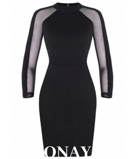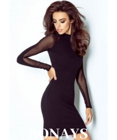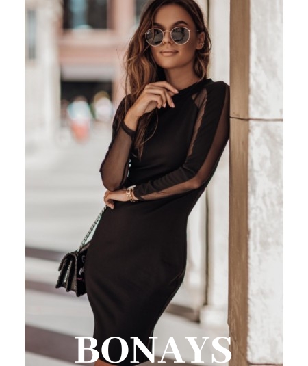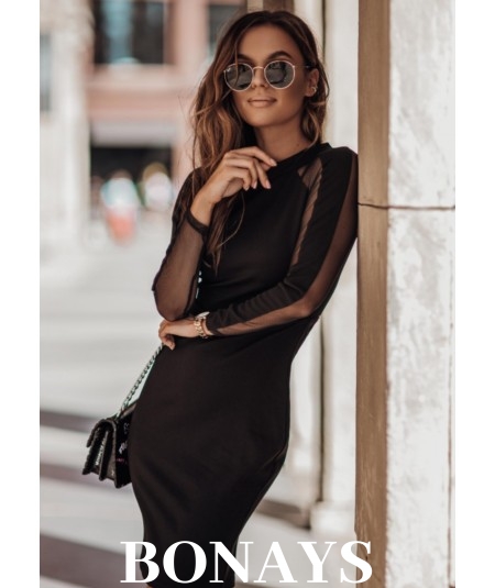 Czarna seksowna sukienka z tiulowym rękawem Jessica