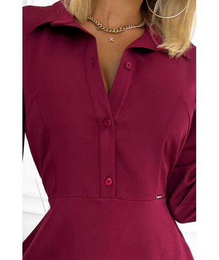 SANDY to koszulowa, rozkloszowana sukienka z paskiem, wykonana z przyjemnego w dotyku materiału (95% poliester, 5% elastan)....