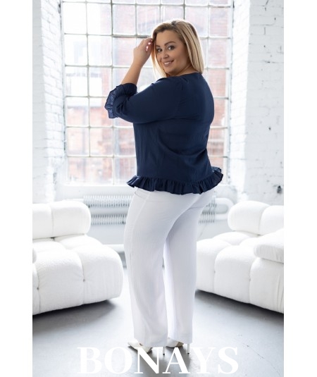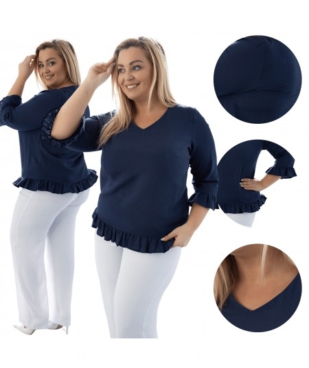Elegancka i stylowa tunika plus size, idealna dla kobiet ceniących komfort i modny wygląd. Wykonana z przewiewnej wiskozy, delikatnie taliowana, z falbankami przy rękawach i dole, które dodają lekkości. Dekolt w serek optycznie wysmukla sylwetkę. Doskonała zarówno do casualowych, jak i eleganckich stylizacji. Must-have w szafie każdej kobiety!