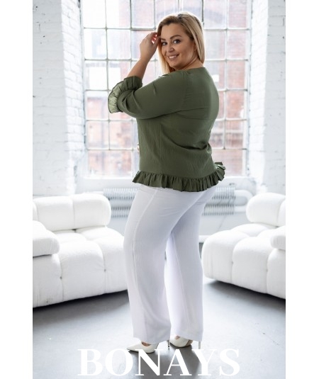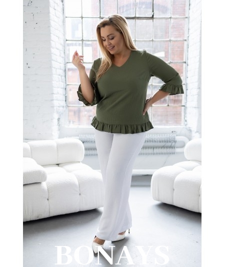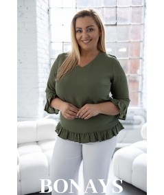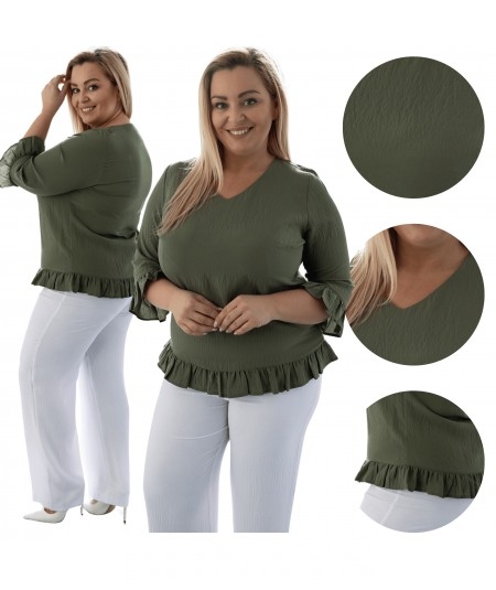 Kreszowana tunika z falbanką i rekawem 3/4 Fantasy Khaki