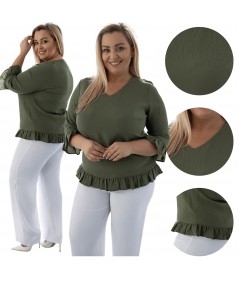Elegancka i stylowa tunika plus size, idealna dla kobiet ceniących komfort i modny wygląd. Wykonana z przewiewnej wiskozy, delikatnie taliowana, z falbankami przy rękawach i dole, które dodają lekkości. Dekolt w serek optycznie wysmukla sylwetkę. Doskonała zarówno do casualowych, jak i eleganckich stylizacji. Must-have w szafie każdej kobiety!