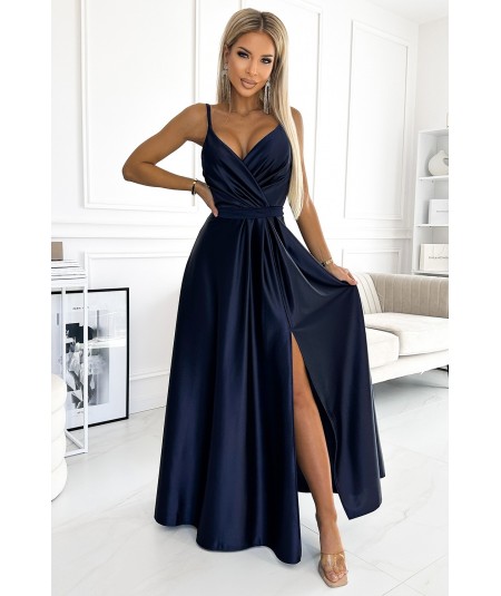 Elegancka, długa błyszcząca suknia Chiara na ramiączkach w chabrowym kolorze. Pięknie wyprofilowany dekolt oraz efektowne...