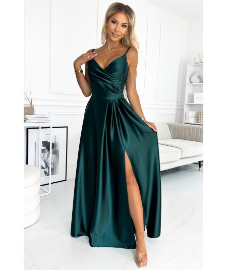 Błyszcząca maxi sukienka z kopertowym dekoltem i rozcięciem na nodze . Uszyta z elastycznego materiału z brokatem. Idealna na eleganckie okazje....