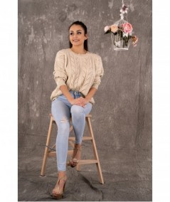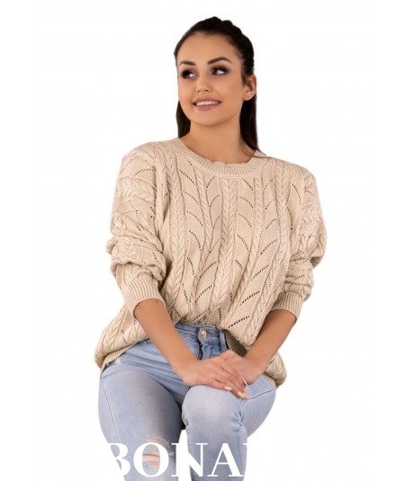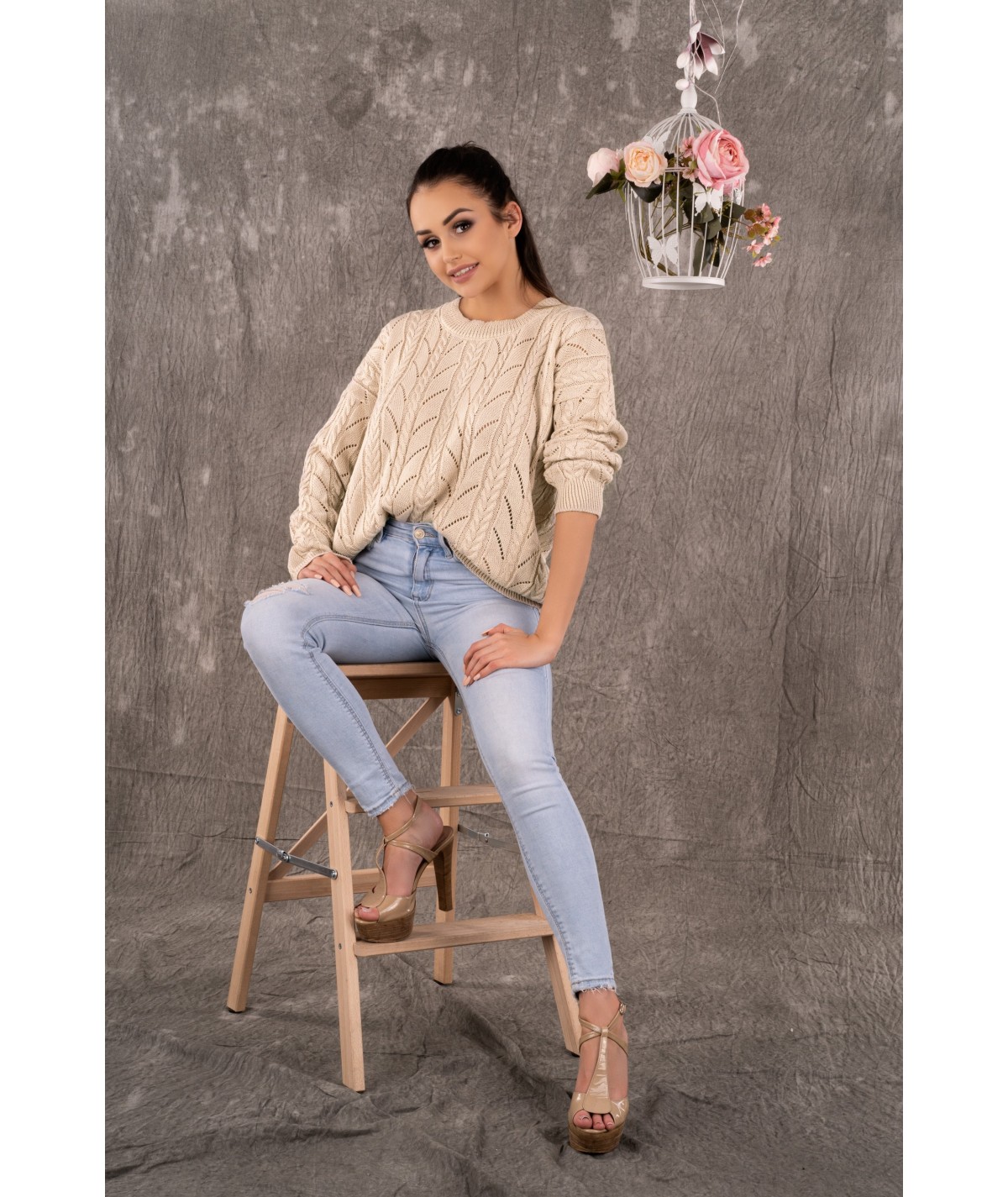 Luźny ażurowy sweterek w warkoczyki Marynesta
