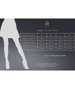 Spódniczka Pearliema wykonana została w 95% polieaster oraz 5% spandex, Zaprojektowana i uszyta w Polsce, modelka na zdjęciu prezentuje na sobie rozmiar S i posiada 170 cm wzrostu.