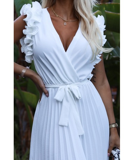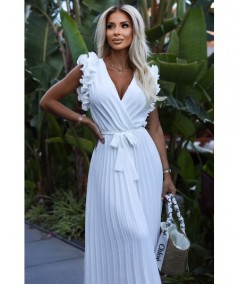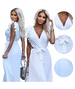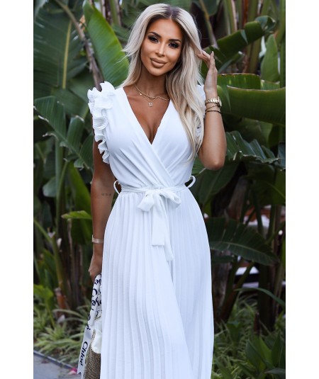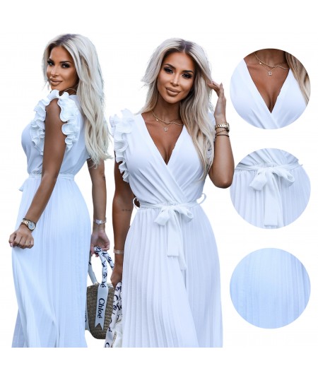 NOWOŚĆ! Plisowana sukienka z kopertowym dekoltem , paskiem i finezyjnymi falbankami . Elegancka propozycja uszyta z...