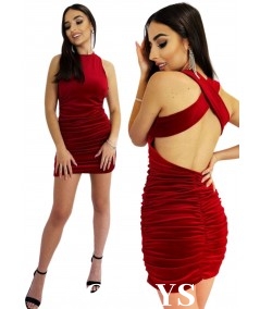 Dzienna sukienka z welurowego, miękkiego materiału, który ładnie układa się na ciele zakrywając wszelkie niedoskonałości. Sukienka z zabudowanym przodem, bez dekoltu, ale za to wzrok przyciągają jej pięknie podkreślone przez głęboki dekolt plecy. Sukienka mini, która optycznie wyszczupla sylwetkę oraz wydłuży nogi. model występuję w 3 kolorach do wyboru i będzie doskonałym pomysłem jako sukienka na romantyczny wypad, jako sukienka na imprezę, sukienka na karnawał lub jako sukienka na tzw. domówkę. Sukienka dodatkowo posiada marszczenia na udach oraz brzuchu - dzięki czemu jeszcze bardziej podkreślisz swój seksapil.