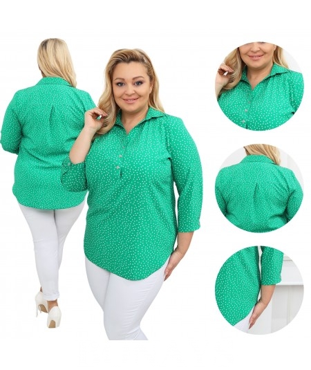 Zielona bluzka w kropeczki z kołnierzykiem i guziczkami