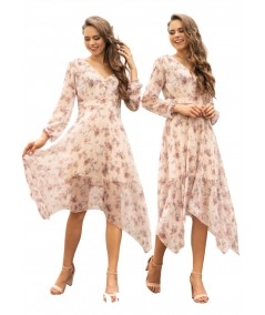Elegancka sukienka maxi z kwiatowym wzorem , wykonana z delikatnego szyfonu na podszewce. Kopertowy dekolt, rozkloszowany krój i...